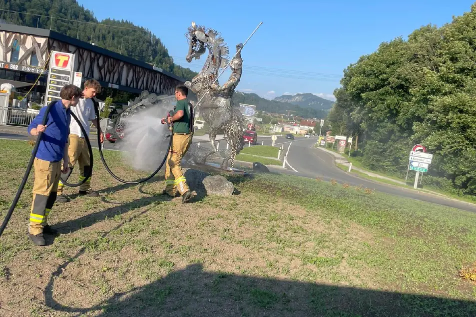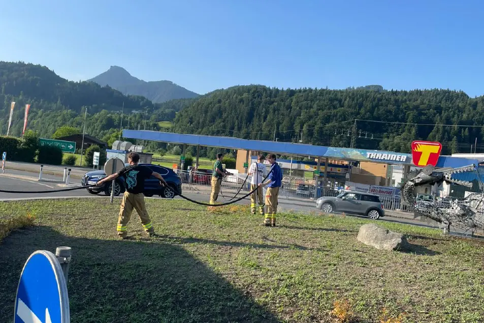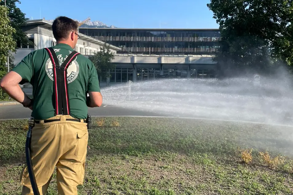 Aufgaben: Ebenso am 20. Juni 2025 rückten wir zu einem Arbeitseinsatz in die Au aus. Der von der Gemeinde neu hergerichetet Kreisverkehr, wurde aufgrund großer Hitze und Trockenheit durch uns bewässert. Wir rückten nach 40 min wieder ins Gerätehaus einrücken.