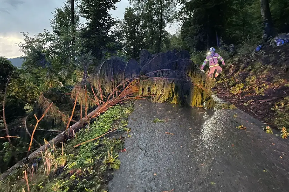 Aufgaben: Am Abende des 14.08.2024 wurden wir per Pageralarm zu mehreren umgestürzten Bäumen im Gemeindegebiet alarmiert. Während wir den ersten umgestürzten Baum gemeinsam mit dem Lader des Gemeindebauhofes beseitigten wurden wir zu weiteren Einsätzen in Form umgestürzter Bäume und verstopfter Regenwasserabläufe gerufen. Welche wir parallel mit vier Fahrzeugen rasch abarbeiten konnten. Nach etwa 1,5h konnten wir alle Einsätze abschließen und rückten wieder ins Gerätehaus ein.