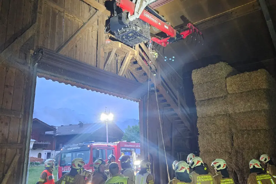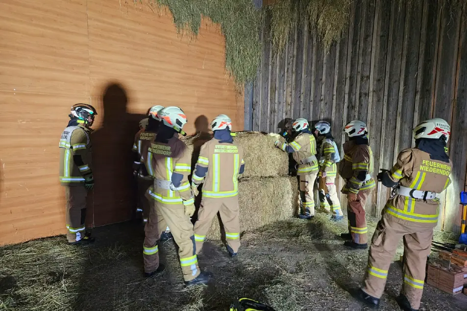 Im Heustald wurden mehrere Personen als vermisst gemeldet. Nach umgreifender Erkundung konnte eine bewusstlose Person und Strohballen eingeklemmt lokalisiert werden. Aufgrund der medizinischen Notlage wurde eine Crashrettung durchgeführt und die Person schnell befreit.