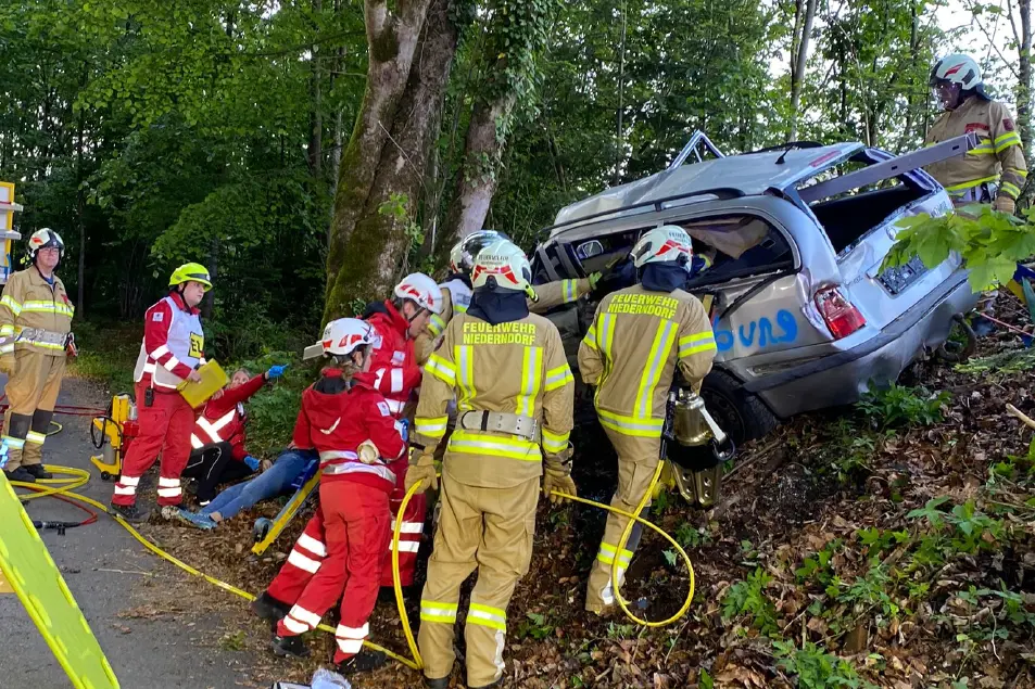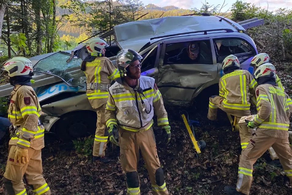 Im Einsatzabschnitt THL wurden zwei verunfallte PKW mit zwei verletzten Personen angenommen. Die Personenbergung erfolgte durch die Kameraden der Feuerwehr NIederndorf. Der ebenso in das Unfallgeschehen verwickelte zweite PKW gerieht rasch in Brand und wurde von der Freiwilligen Feuerwehr Oberaudorf mit Unterstützung des Niederndorfer Tankwagens abgelöscht wurde.
