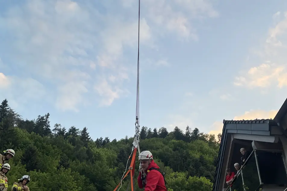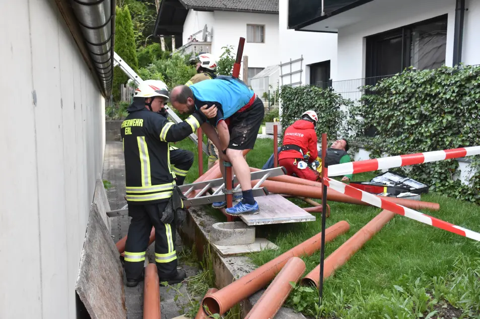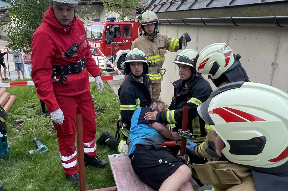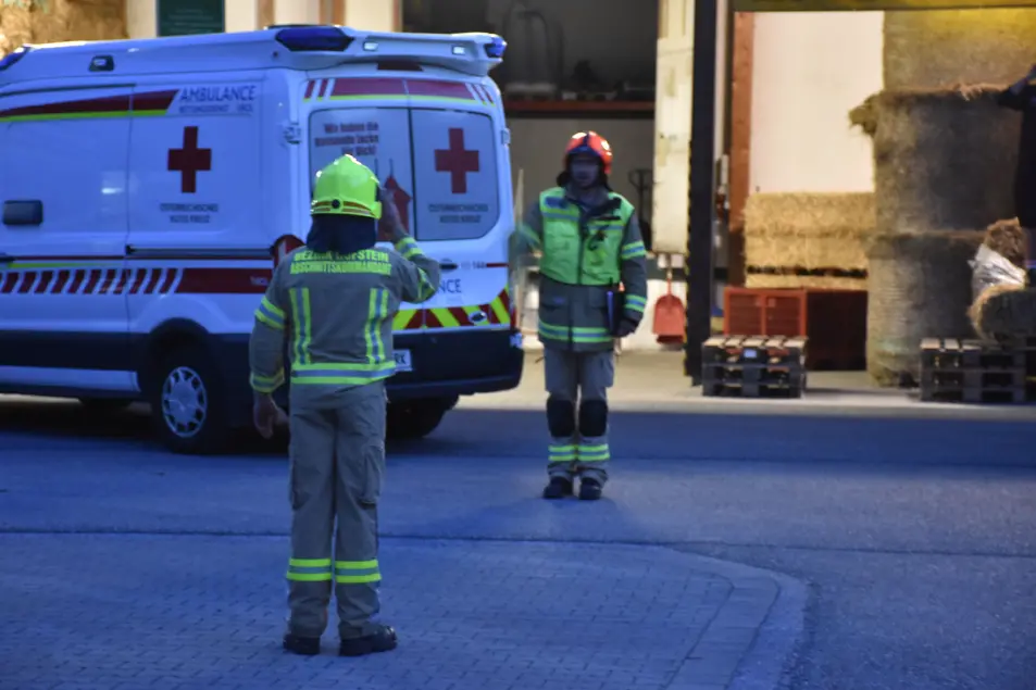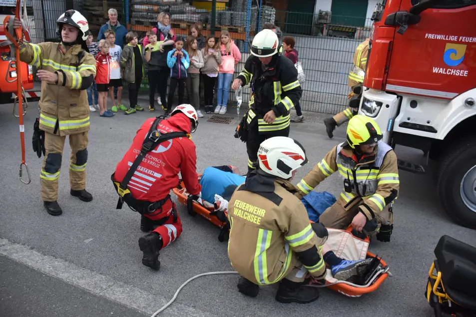 Im zweiten Einsatzabschnitt wurden zwei Verletzte Personen (ein Person gepfählt durch eine Eisenstange und eine Person mit tiefer Schnittwunde) angenommen. Die Personen waren schwer zugänglich und es musste ein Zugang über das Gebäudedach hergestellt werden. Sodass die Erst- und weitere Versorgung der Patienten durch das Rote Kreuz Kufstein erfolgen konnte. Die Kameraden der Feuerwehr Buchberg und Feuerwehr Erl stellten über das Dach einen Zugang zur Person her und bargen beide Personen dann mit Unterstützung der Drehleiter der Feuerwehr Walchsee.
