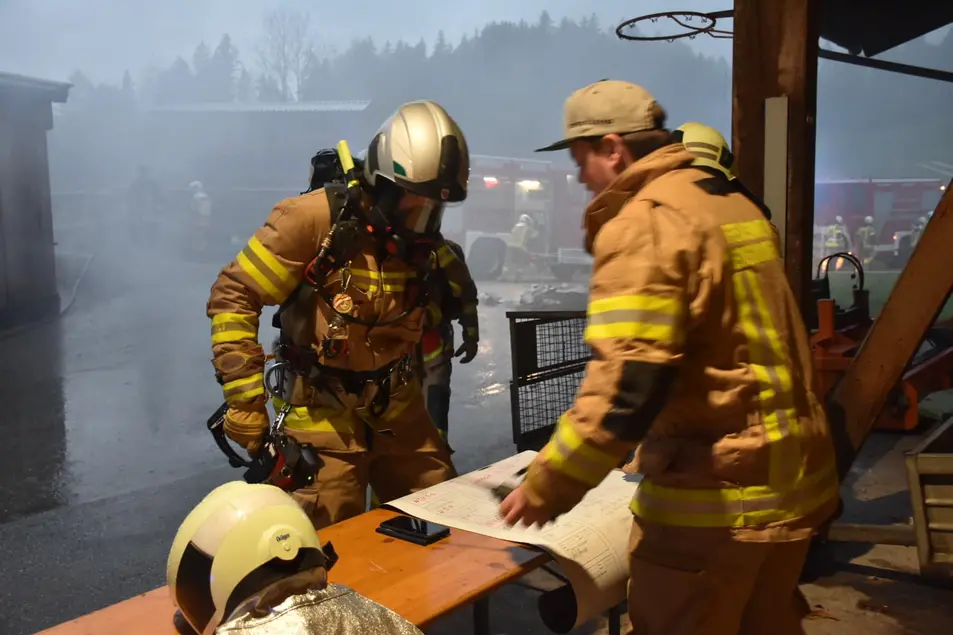 Personenrettung und Löschwasserversorgung zur vollsten Zufriedenheit des Einsatzleiters Franz Bliem gemeistert werden.
