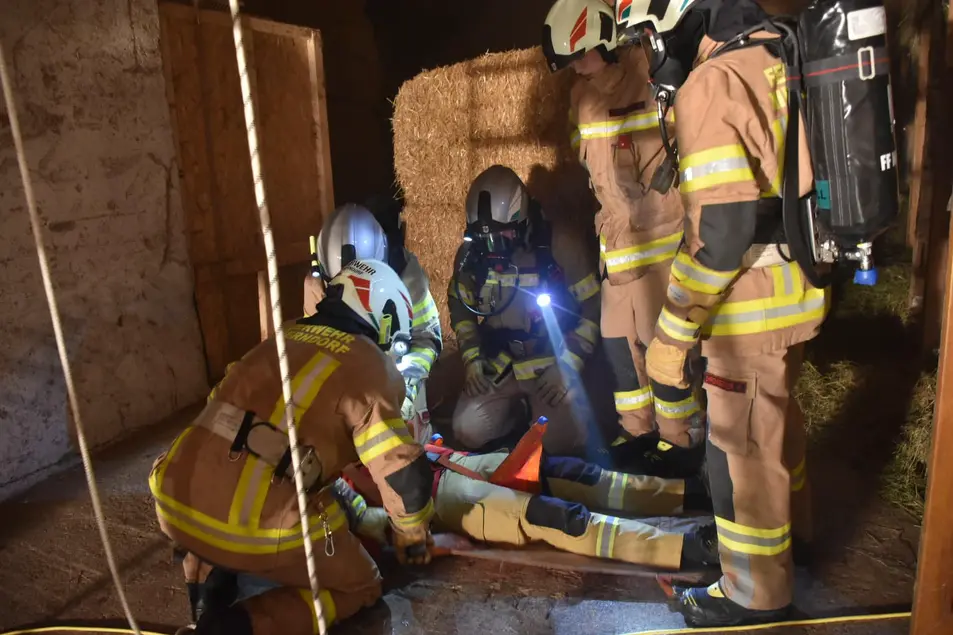 Übungsannahme war ein Brand eines landwirtschaftlichen Anwesens mit mehreren vermissten Personen.