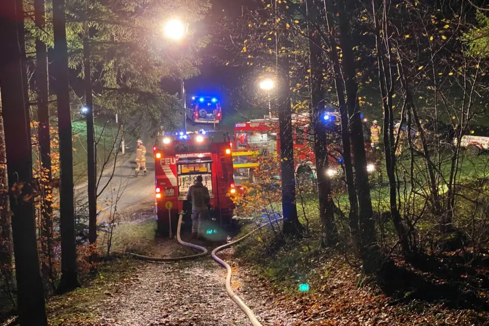 Bei der Brandbekämpfung, dem Ausleuchten des Einsatzortes sowie dem Aufbau der umfangreichen Speiseleitung unterstützten uns die mitalarmierten Kräfte der Feuerwehr Niederndorferberg und der Feuerwehr Ebbs.