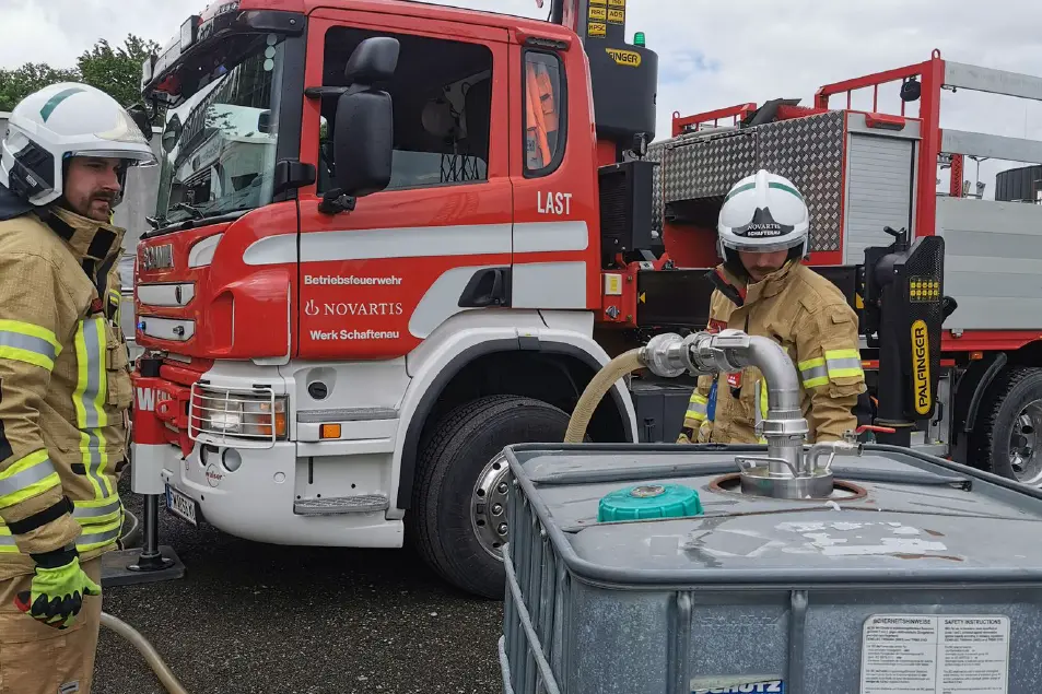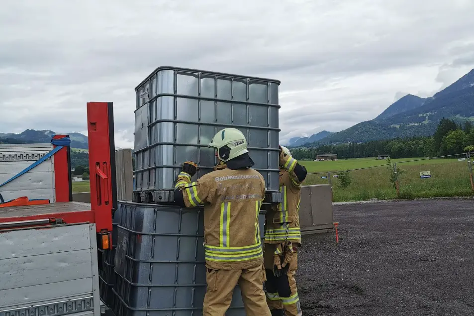 Heute Mittag wurde die Betriebsfeuerwehr Novartis Schaftenau und die Betriebsfeuerwehr BIO Kundl an die Verbandskläranlage Untere Schranne alarmiert. Aufgabe war es die restlichen Treibstoffe, welche gestern kurzfristig in ein Überlaufbecken gepumpt wurden, noch abzusaugen. Mittels spezieller Pumpvorrichtungen zum oberflächennahen Absaugen von Flüssigkeiten wurden die nun wieder entmischten Stoffe abgepumpt. Und in Großbehältern zur weiteren Entsorgung transportiert.