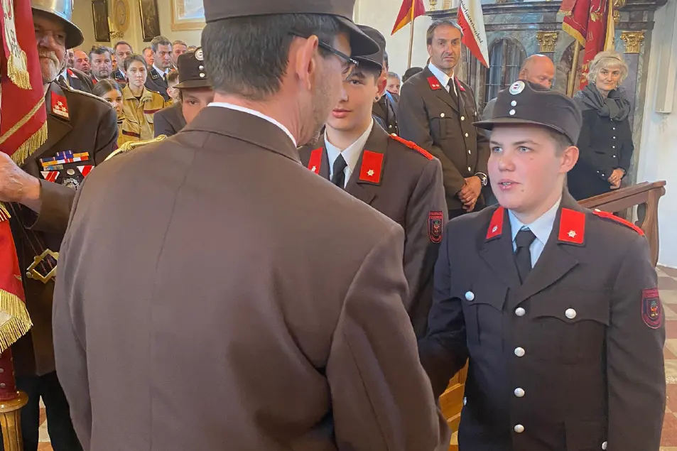 Im Rahmen der Feierlichkeit gelobten „Gehorsamkeit und treue Kameradschaft“ drei junge Feuerwehrmänner der Niederndorfer Wehr..