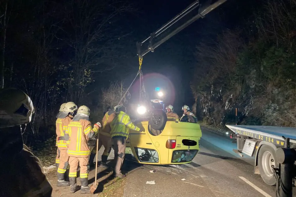 Ein PKW hatte sich überschlagen und die Person wurde zuerst als eingeklemmt gemeldet. Auf der Anfahrt haben wir noch die Meldung erhalten dass die Person nicht mehr eingeklemmt sondern eingeschlossen im PKW war.