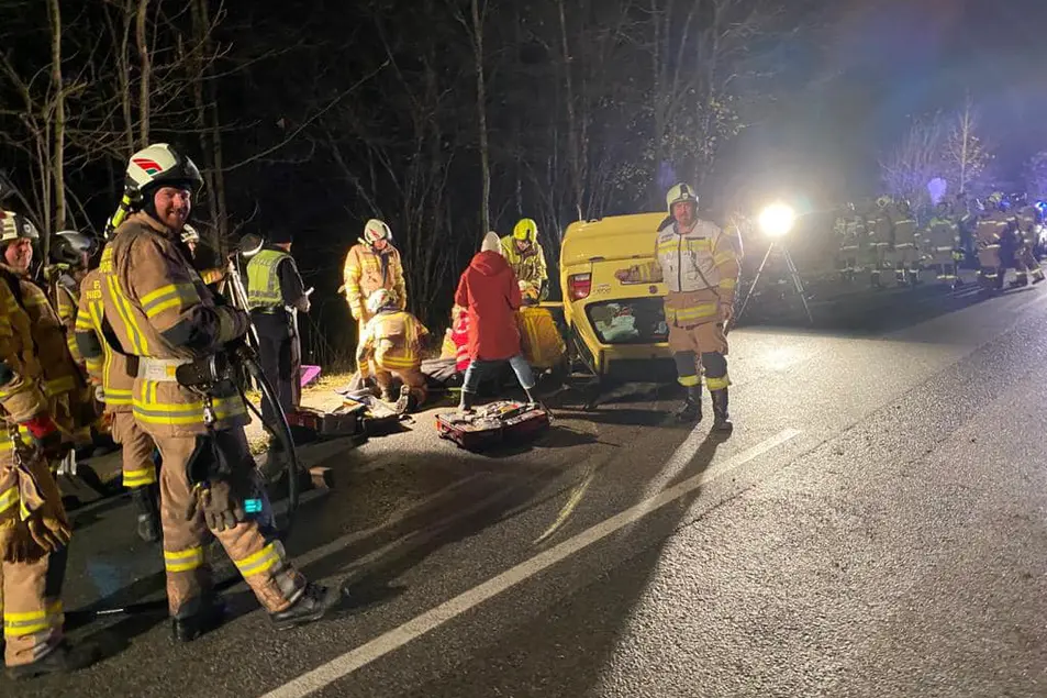 Die Kameraden der Feuerwehr Niederndorferberg hatten die Unfallstelle bereits abgesperrt, ausgeleuchtet und die Person befreit, sodass diese von den First Respondern versorgt werden konnte. Und dann dem eintreffenden Rettungsdienst übergeben werden konnte.