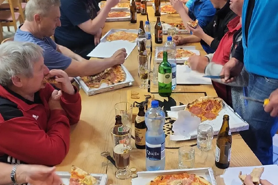 Nach getaner Arbeit hat unser Wirt noch auf a ordentliche Brotzeit mit ein paar 🍻eingeladen.