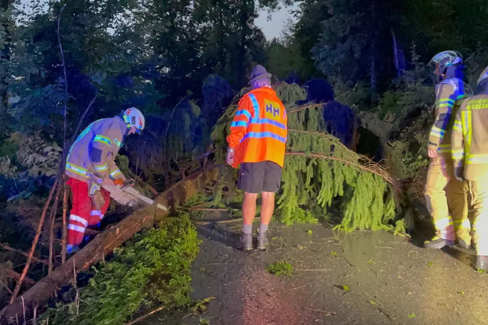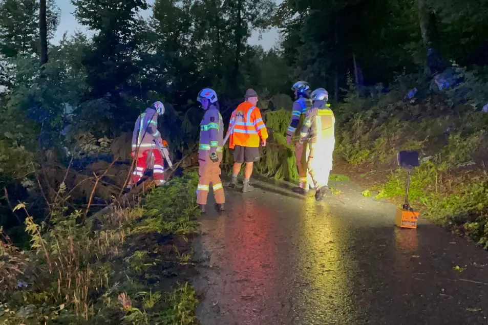 Aufgaben: Am Abende des 14.08.2024 wurden wir per Pageralarm zu mehreren umgestürzten Bäumen im Gemeindegebiet alarmiert. Während wir den ersten umgestürzten Baum gemeinsam mit dem Lader des Gemeindebauhofes beseitigten wurden wir zu weiteren Einsätzen in Form umgestürzter Bäume und verstopfter Regenwasserabläufe gerufen. Welche wir parallel mit vier Fahrzeugen rasch abarbeiten konnten. Nach etwa 1,5h konnten wir alle Einsätze abschließen und rückten wieder ins Gerätehaus ein.