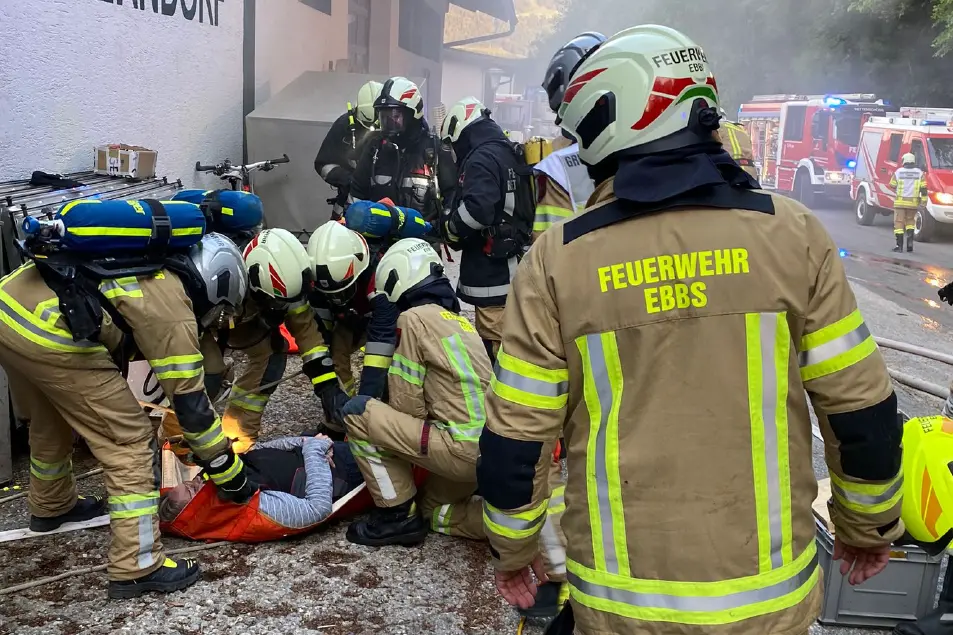 Im dritten Abschnitt wurde ein Brand mit mehreren vermissten Personen angenommen. Die Personen wurden im verrauchten Gebäude mittels mehrerer Atemschutztrupps der Feuerwehr Ebbs, Feuerwehr Rettenschöss und Feuerwehr Niederndorferberg gesucht, sowie eine eingeklemmte Person im Gebäude geborgen.