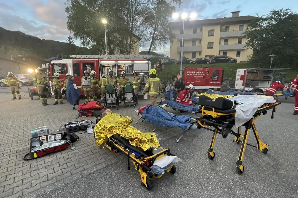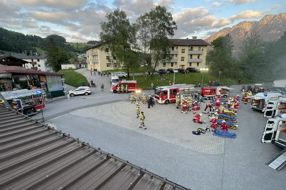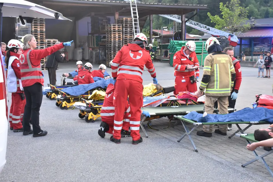 Zusätzlich zu den alarmierten Feuerwehren unterstützte uns das Rote Kreuz Kufstein mit mehreren Fahrzeugen und Einsatzkräften bei allen Szeanrien. Ebenso wurde un umfassender Patientenversorungsplatz aufgebaut, in welchem die Patienten nach Ihren Verletzungen beurteilt und anschließend in die Krankenhäuser aufgeteilt werden.