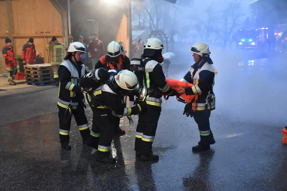 Personenrettung und Löschwasserversorgung zur vollsten Zufriedenheit des Einsatzleiters Franz Bliem gemeistert werden.