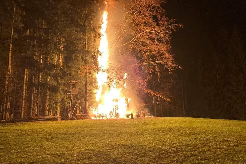 Beim Eintreffen haben wir eine Hütte sowie daneben stehende Bienenstöcke im Vollbrand vorgefunden. Mit sofort eingesetztem umfassenden Angriff konnte eine Ausbreitung des Brandes auf den Wald sowie die weiteren Bienenstöcke und deren Bewohner verhindert werden.